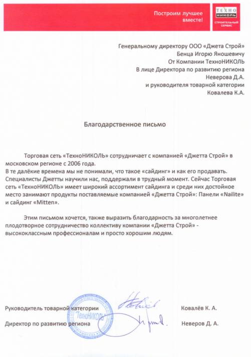 Отзыв компании ТехноНиколь.